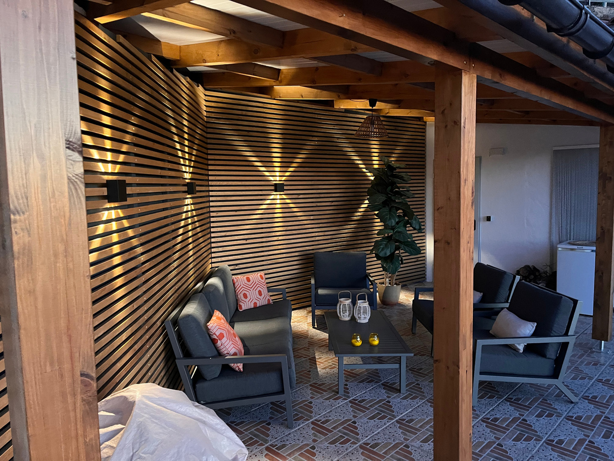 Doordat we in Spanje grotendeels buiten leven en op verschillende momenten van de dag van de zon willen genieten hebben we meerdere zitjes.