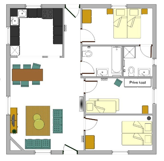 Slaapkamer 3 is de middelste kamer met een stapelbed van bedden van 90cm breed. Het stapelbed is zeer stevig en ook geschikt voor volwassenen.